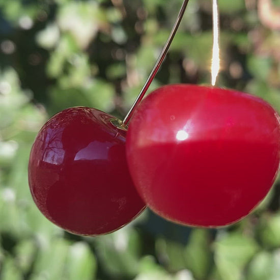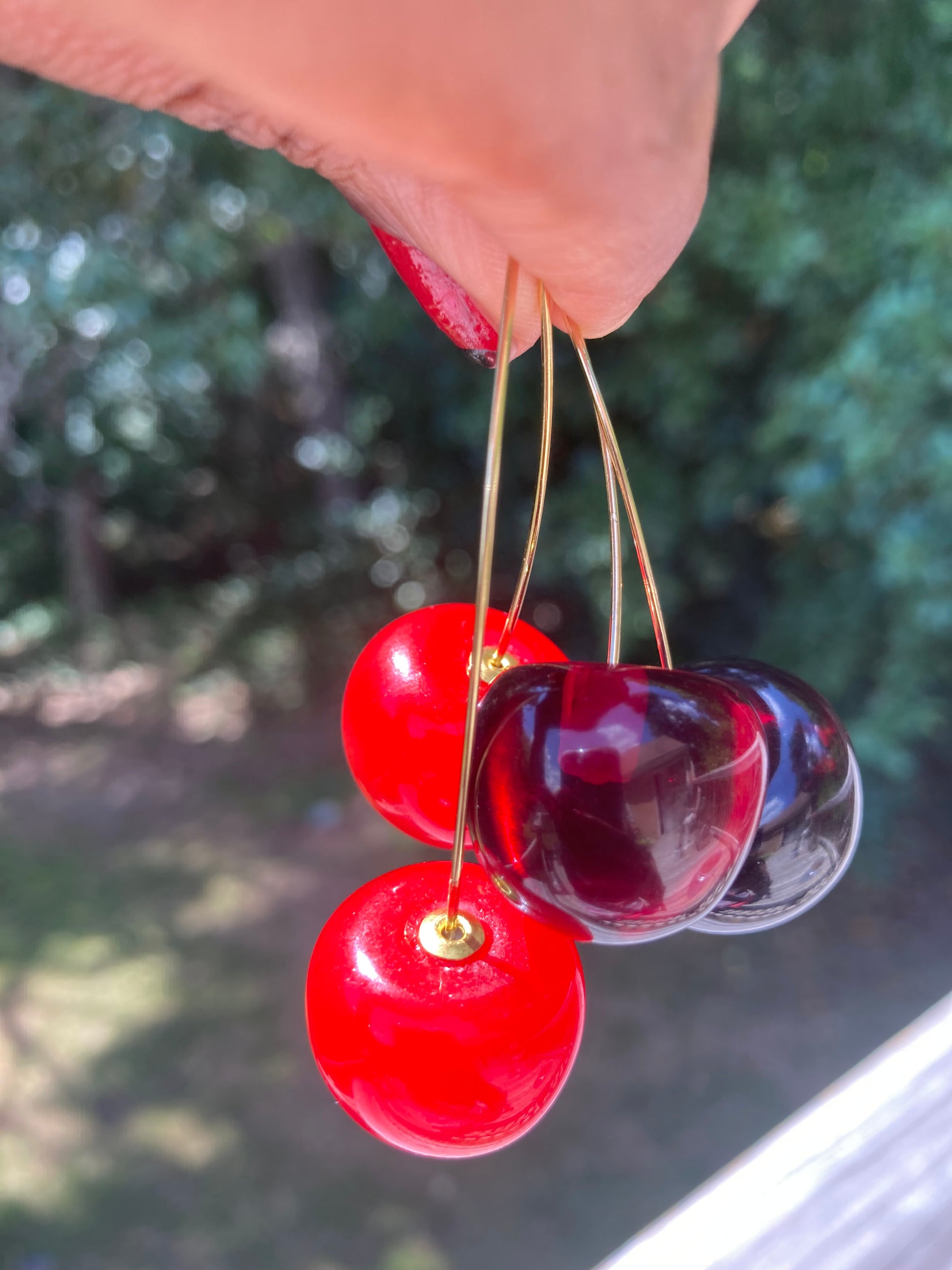 Dare to be bold with these Red Gold-plated Cherry Drop Earrings! Made from acrylic, these daring earrings will have you standing out from the crowd in style. Add a touch of flare to your everyday look and make a statement with these designer-inspired accessories!